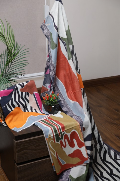 Description: Design a truly modern masterpiece with the Meri Lado 2 Piece Luxury Printed Lawn Unstitched Suit Fabric. This avant-garde design is a bold fusion of vibrant colors—including earthy green, fiery orange, and coral—with striking abstract and geometric patterns. Elements like the zigzag chevron print create a dynamic and edgy aesthetic, unlike any other suit. Crafted from premium, soft lawn fabric, this material is wonderfully lightweight and supremely breathable, giving you comfort and style for the warmer months. The two-piece set includes ample printed shirt fabric and coordinating trouser fabric, allowing you to custom-tailor a look that perfectly fits your body and vision. Use this fabric to create a stunning, unique ensemble for a day out, a casual evening, or a trendy statement look.
