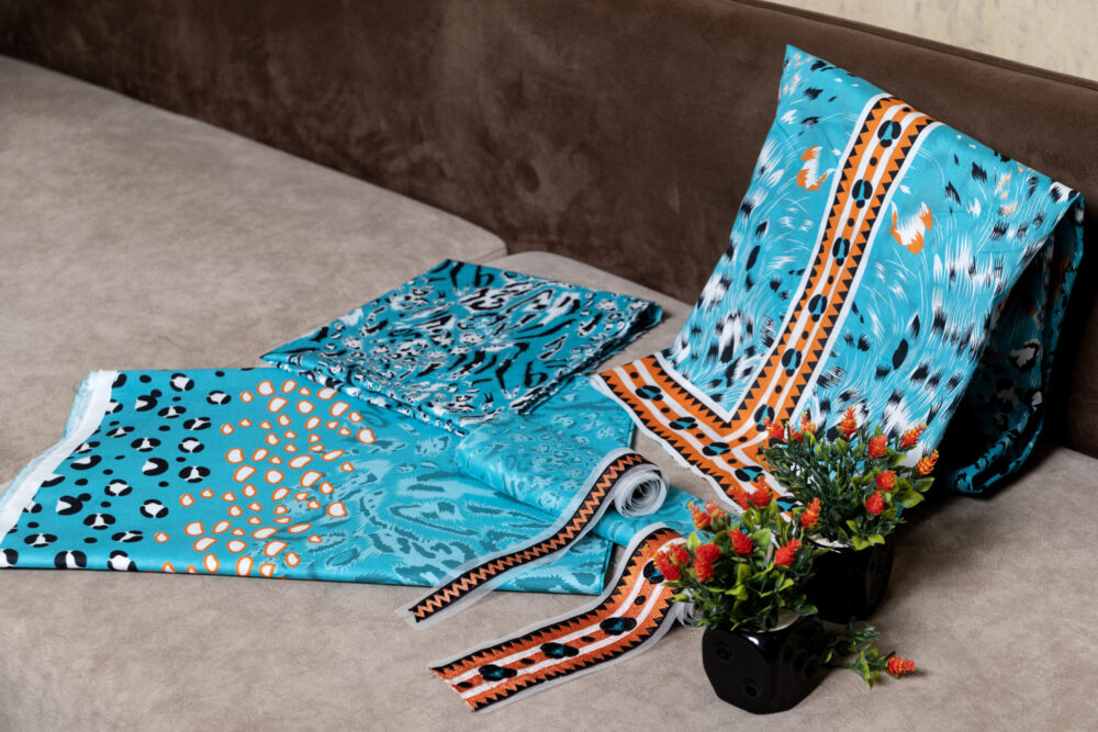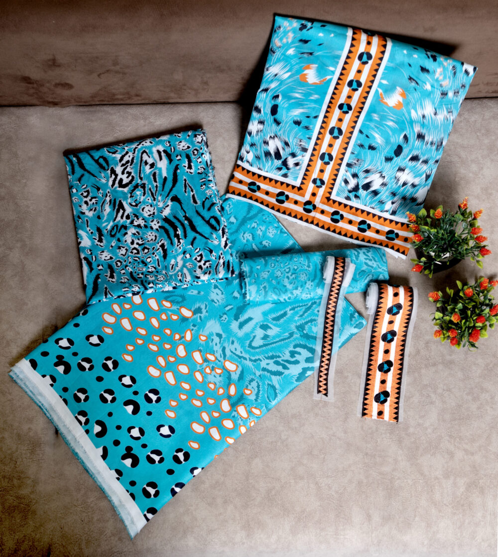2 Piece Luxury Printed Lawn – Unstitched Turquoise Animal Print Suit Fabric