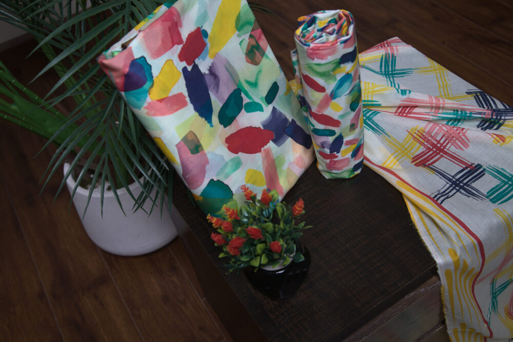 3 Piece Luxury Printed Lawn – Unstitched Multicolor Watercolor Splash Suit Fabric